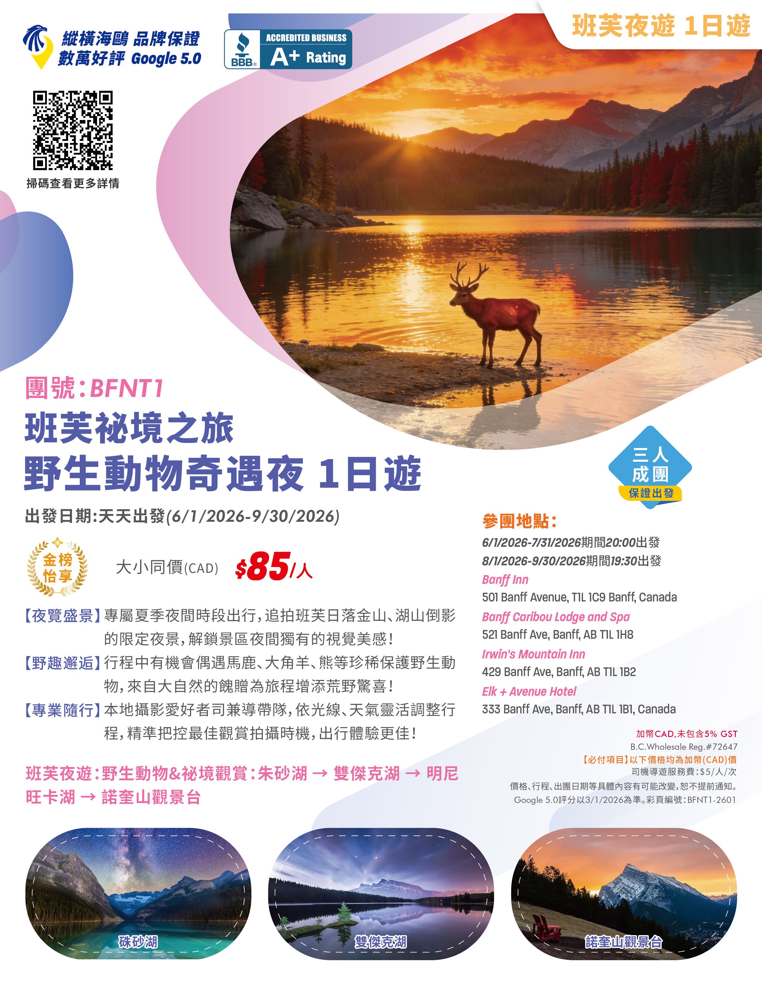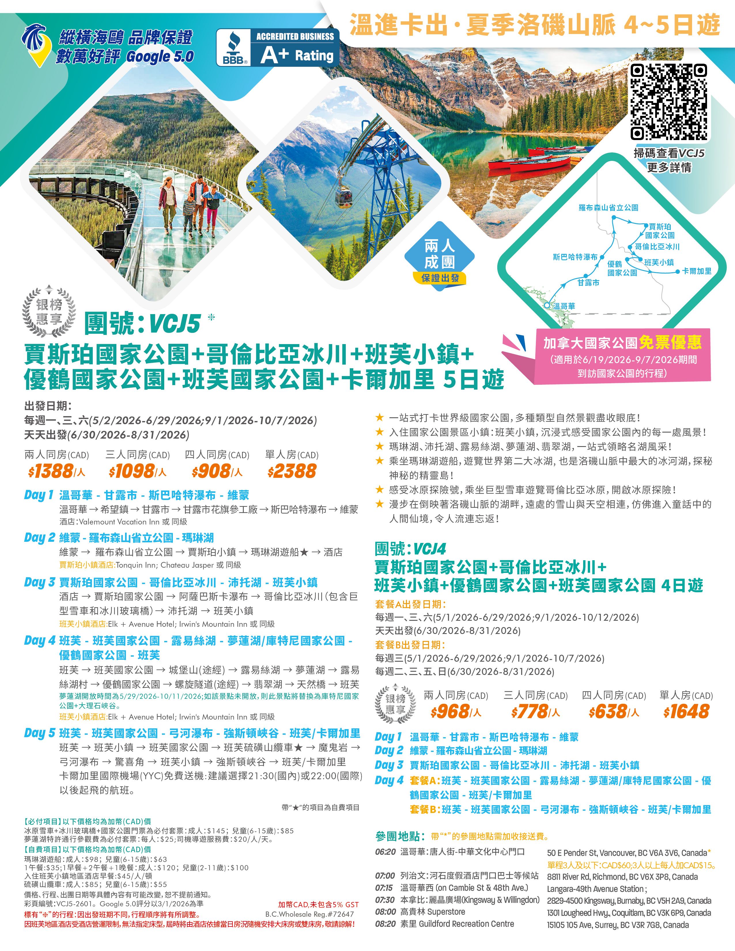 優鶴國家公園/班芙國家公園/哥倫比亞冰原 兩人成團, 保證出發, Google 5.0