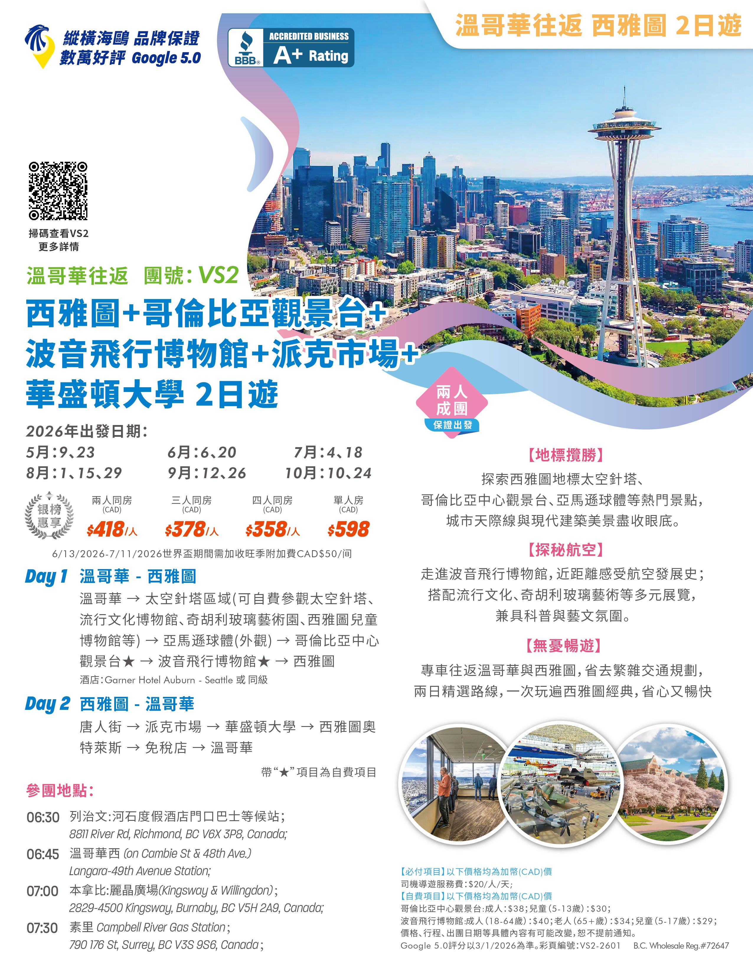 溫哥華市區/維多利亞/威士拿/西雅圖/觀鯨 縱橫海鷗,數萬好評,Google 5.0,口碑載道